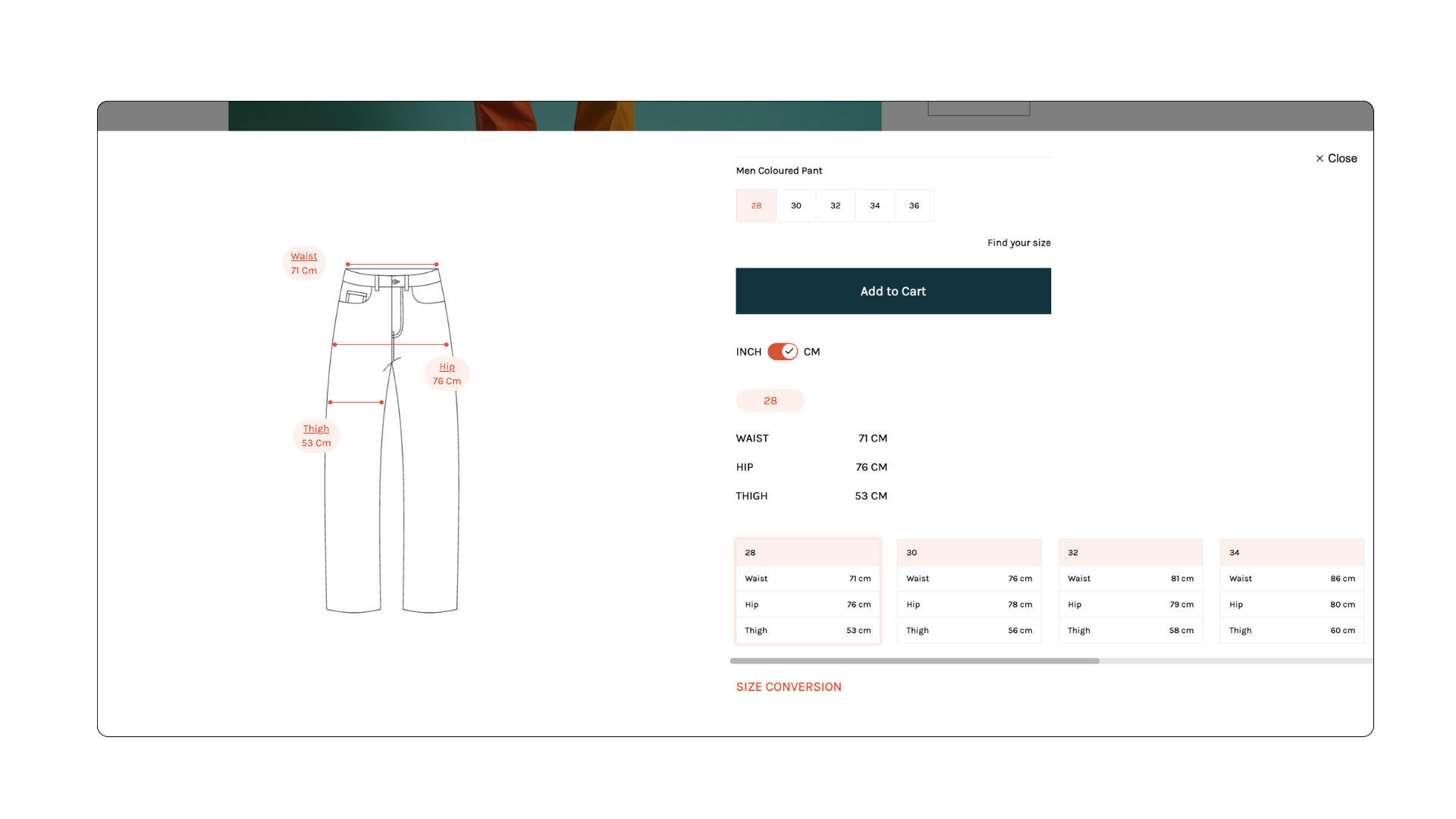 Once you create a size chart, it automatically adjusts its layout and images to display clearly on both mobile and desktop devices.